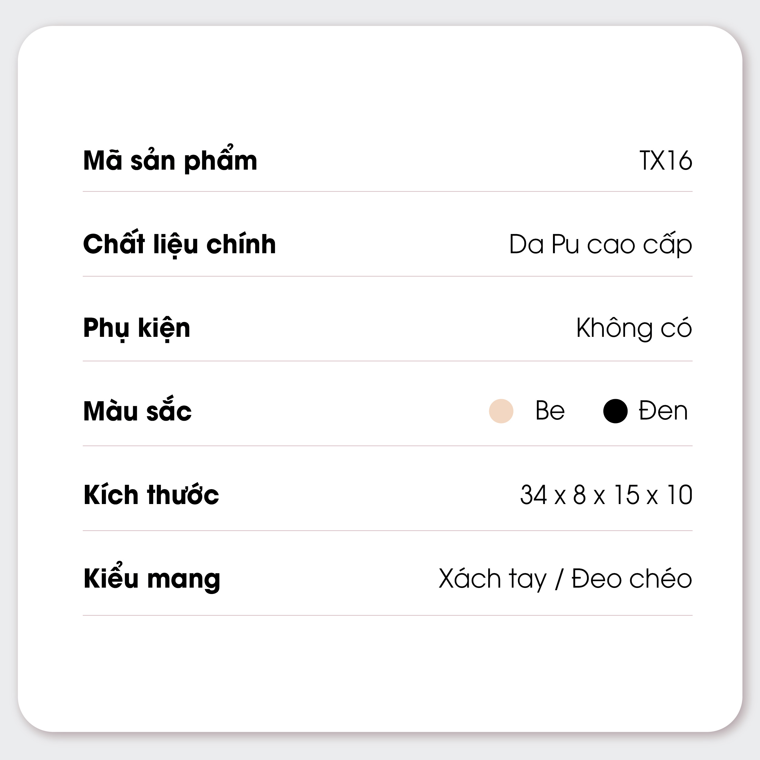 TX16 - Túi Xách Size 34